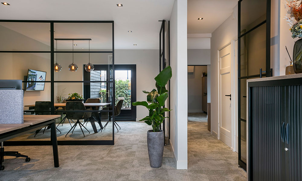 De industriële stijl ontstond in oude fabriekspanden en werkplaatsen en heeft zijn weg gevonden naar moderne kantooromgevingen. Denk aan stoere metalen details, onafgewerkte muren en robuust meubilair. Wat deze stijl zo populair maakt, is de balans tussen stoer en functioneel. Het is een stijl die je ruimte modern en professioneel laat ogen, maar toch warm en uitnodigend blijft. Precies wat een moderne werkplek nodig heeft.