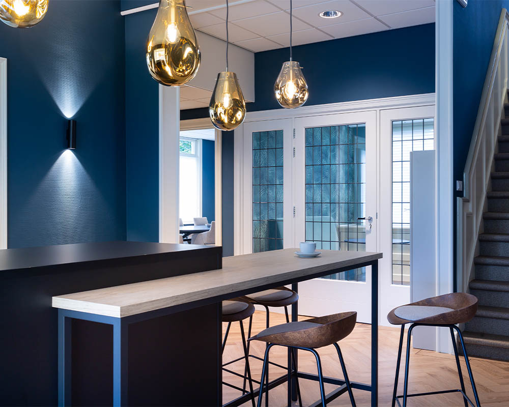 GRIP interieurprojecten maakte een ontwerp waarin de herkenbare BVD-huiskleur blauw op subtiele wijze overal terugkomt. Een fris, eigentijds concept dat zowel professioneel oogt als een warme, toegankelijke sfeer uitstraalt.
