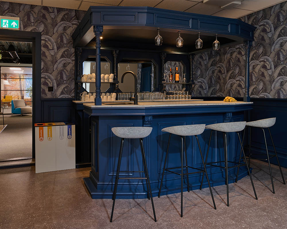 De showroom is omgetoverd tot een moderne ontmoetingsruimte met alle voorzieningen die je mag verwachten van een toekomstbestendige werkomgeving. Zo is er een uitgebreide, luxe keuken die perfect functioneert als kantine en lunchruimte. Daarnaast zijn er comfortabele zitplekken voor informeel overleg en een volledig ingerichte vergaderruimte voor meetings.